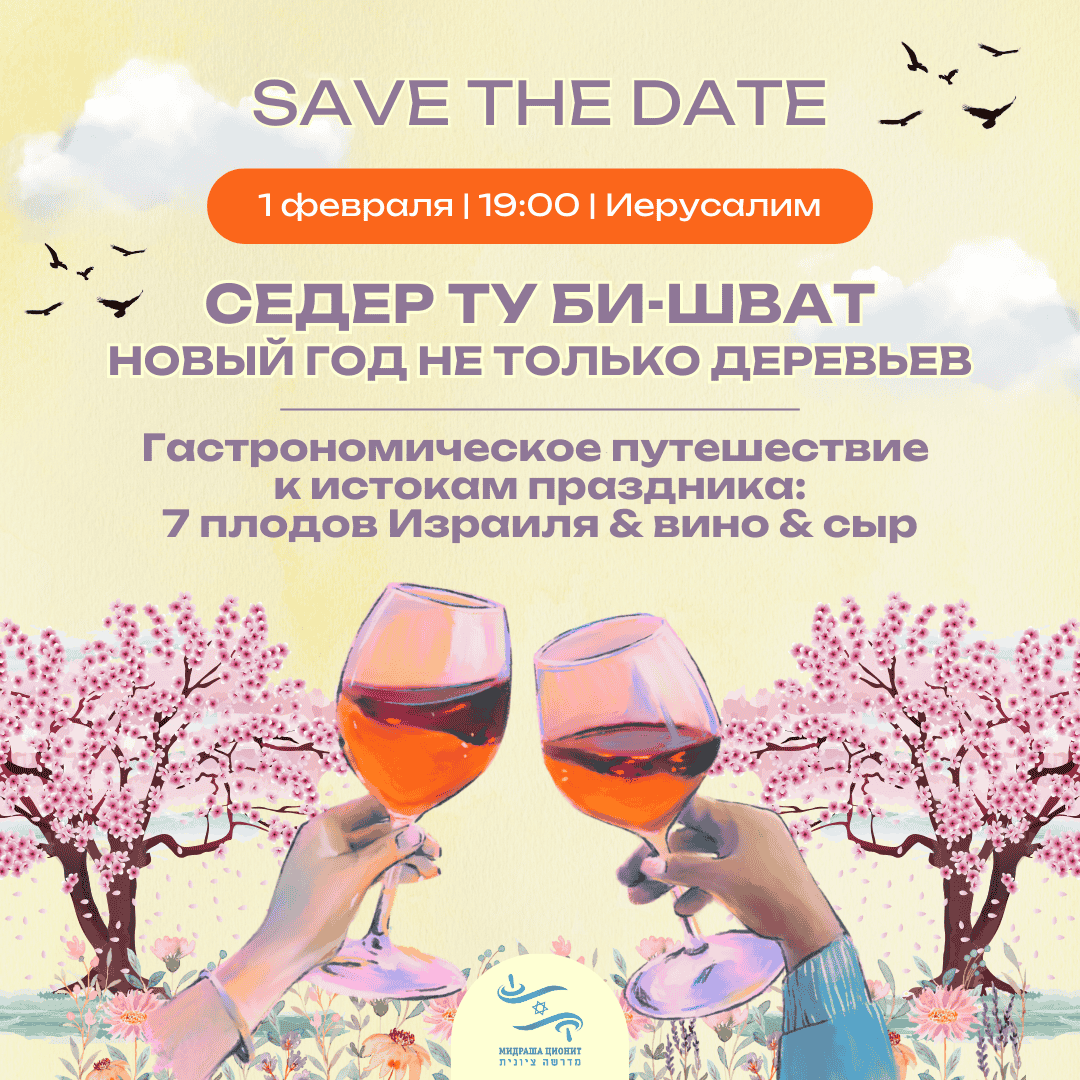 Мы проведем настоящий Седер Ту би-Шват. В программе вечера — вкусы и ароматы Эрец-Исраэль: дегустация 7 видов плодов, которыми славится наша земля, в прекрасном сочетании с вином и сырами.